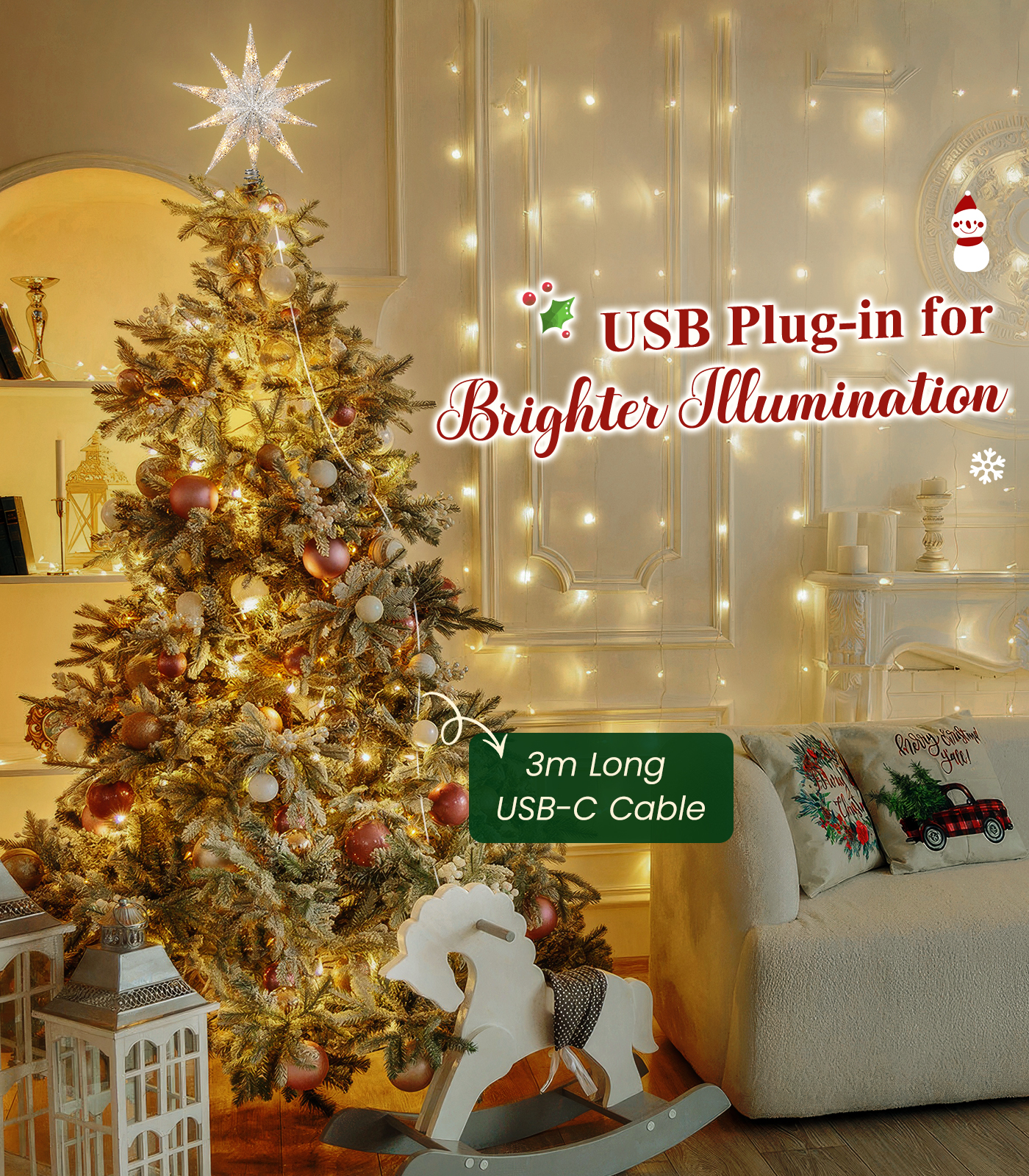 10 ft USB Cable – The extended cable allows the Christmas tree topper to be placed on Christmas trees from 4ft to 7.5ft, suitable for most decorating needs.